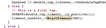 더블클릭은 클릭 이후 300ms 이후에 다시 클릭했을 때 발생되는 이벤트라는 것을 알 수 있다. 정의 파일인 h 파일과 구현체인 cc 파일을 살펴보면 더 재미있는 것 몇가지를 알 수 있다.
