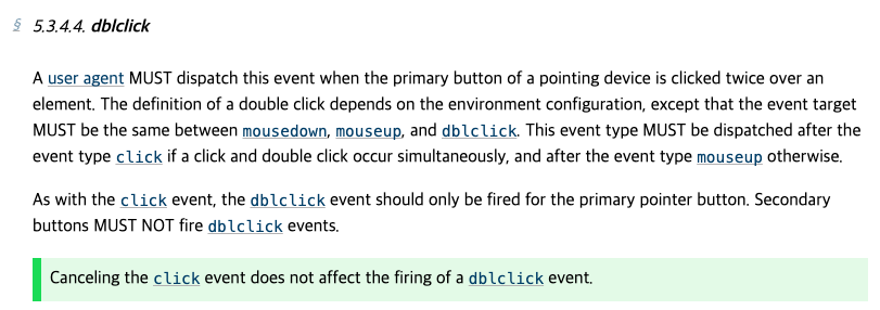 웹의 표준을 기재하는 W3C에서 살펴보면, 더블 클릭에 대해 조금 더 알 수 있다.