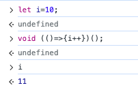 void는 아주 특이한데, 뒤에 이어질 연산을 실행한 후 undefined를 반환하는 일종의 '고차함수'라고 할 수 있다. 간간히 사용하는 void 0 구문은 '0' 연산을 실행한 후 undefined를 반환하는 구문인 것이다. 그렇기 때문에 0이 아닌 다른 값을 넣을 수도 있다.