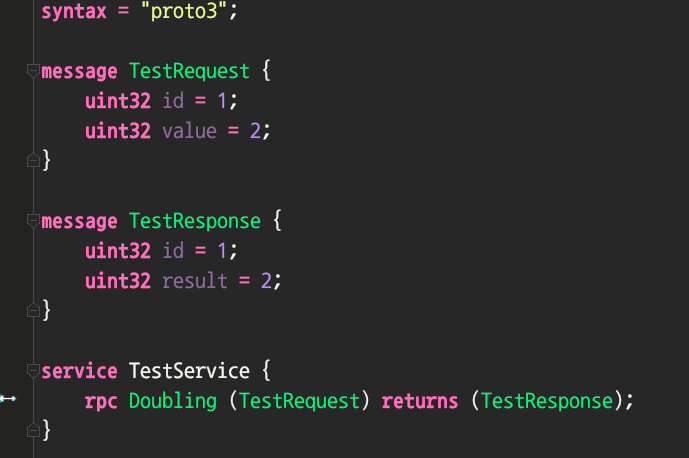 먼저 proto 확장자를 가지는 protobuf 파일을 작성한다. protobuf 파일에는 message, rpc 등 송수신할 메시지 형태나 호출할 서비스명, 그리고 분류될 패키지 명 등을 작성한다. protobuf의 버전명도 명시하도록 되어 있어 버전업에도 대응이 가능해 보인다.