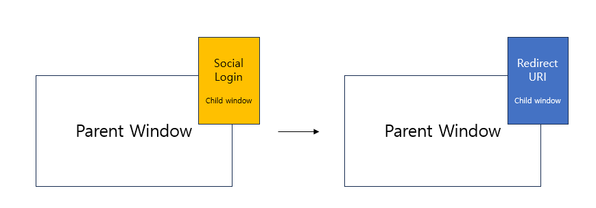 얼핏 보면 앞서 설명한 과정들을 모두 하나의 URL, 그러니까 Redirect URI로 설정한 페이지에 구현해도 무리가 없어 보인다. 하지만 한가지를 놓쳤다. 팝업 로그인이다. 팝업의 경우에도 Redirect URI로 이동하게 되는데, 로그인 폼이 노출되었던 자식 창이 이동한다는 점을 주의해야 한다. 일반적인 경우라면 자식 창을 닫고 부모 창에서 이동해야 한다.