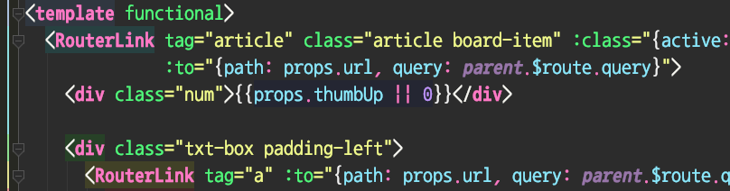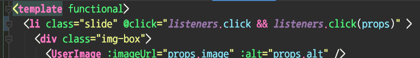함수형 컴포넌트, 그러니까 라이프 사이클과 컴포넌트 자체 데이터가 없는 컴포넌트는 Vue.js, React 모두에 존재하는 개념이다. 함수형 컴포넌트는 가볍다. 일반적인 컴포넌트가 VDOM-MVVM 객체로 짝을 맞춰 처리되는 것과 달리 VDOM만 존재하기 때문이다. 재미있는 점은 Vue.js의 경우에는 부모 컴포넌트에 붙어 부모 컴포넌트의 데이터를 사용할 수 있다는 점이다.