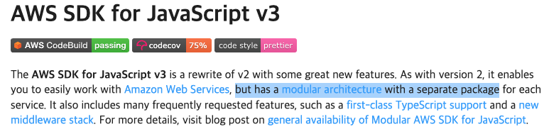이곳의 서비스들은 클라이언트 로그(통계 정보) 수집을 위해 aws kinesis를, 사용자의 인증 정보를 획득하기 위해 cognito를 사용하고 있다. 문제는 이 클라이언트 로그라는 것이 주요 로직이 아닐뿐더러, 항상 개발 기간 최후반부에 들어서야 구체적으로 나오기 때문에 신경쓸 겨를이 없다는 것이다. 개인적으로는 이 로그가 프론트엔드 개발에 있어 가장 중요한 업무 중 하나라고 생각하고 있어 찬밥 신세라는게 안타까울 뿐이다. 아무튼 개발 기간이 얼마 남지 않은 상황에서 기존 방식과 유사하게 구현해야 하는 부분이 많다보니 단순하게 코드 copy & paste로 처리하게 된다. 작동 자체에 문제는 없지만, 당연하게도 프로젝트의 필요에 따라 코드 변형이 일어나 관리에 어려움이 있었고 aws-sdk v2를 사용하다 보니 성능 측면에서 아주 큰 문제가 있었다(이 내용은 상반기 회고 글에 적었던 것 같으니 제외하도록 한다)